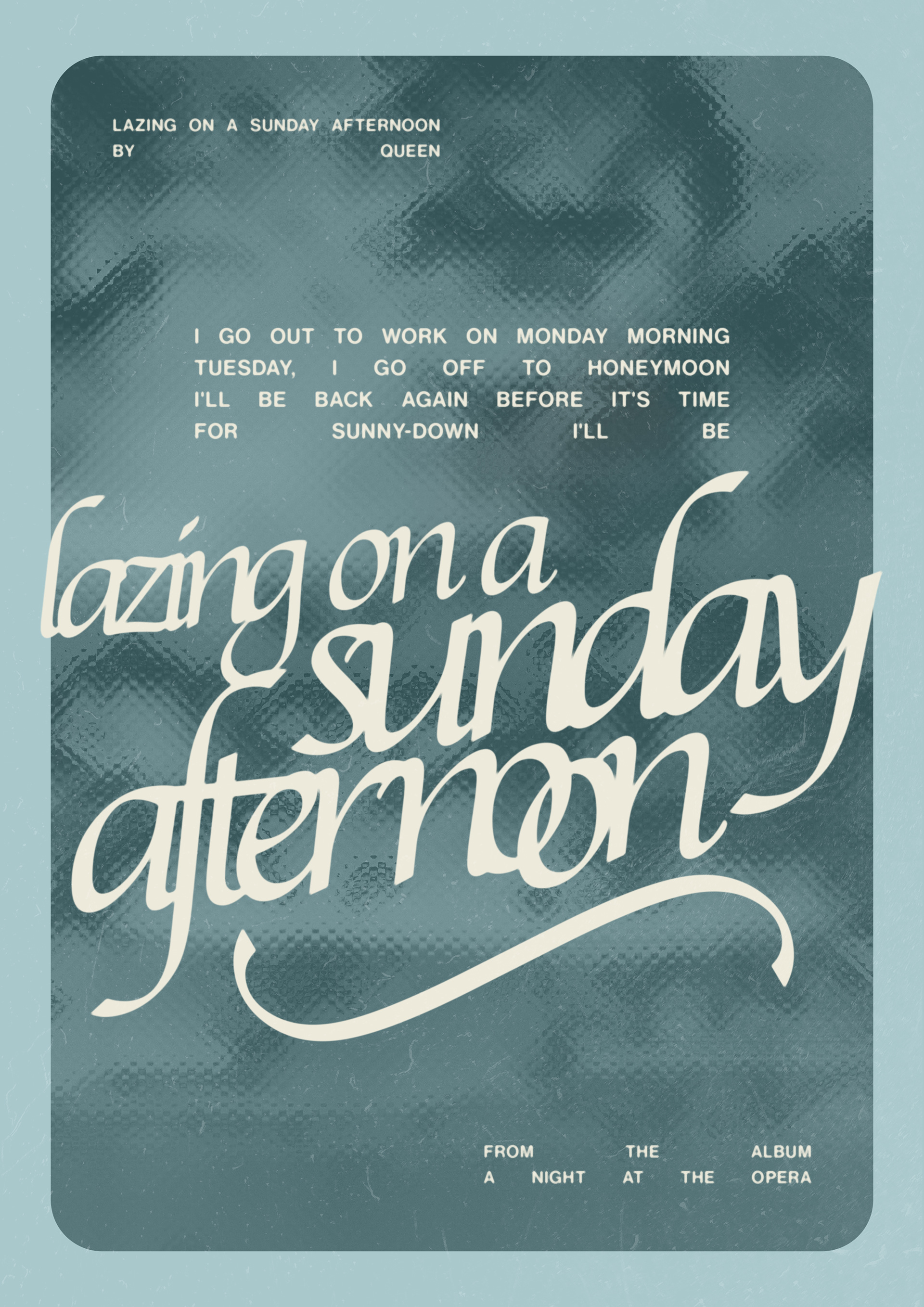 My concept behind them was a series of music posters with songs I had stuck in my head that day!