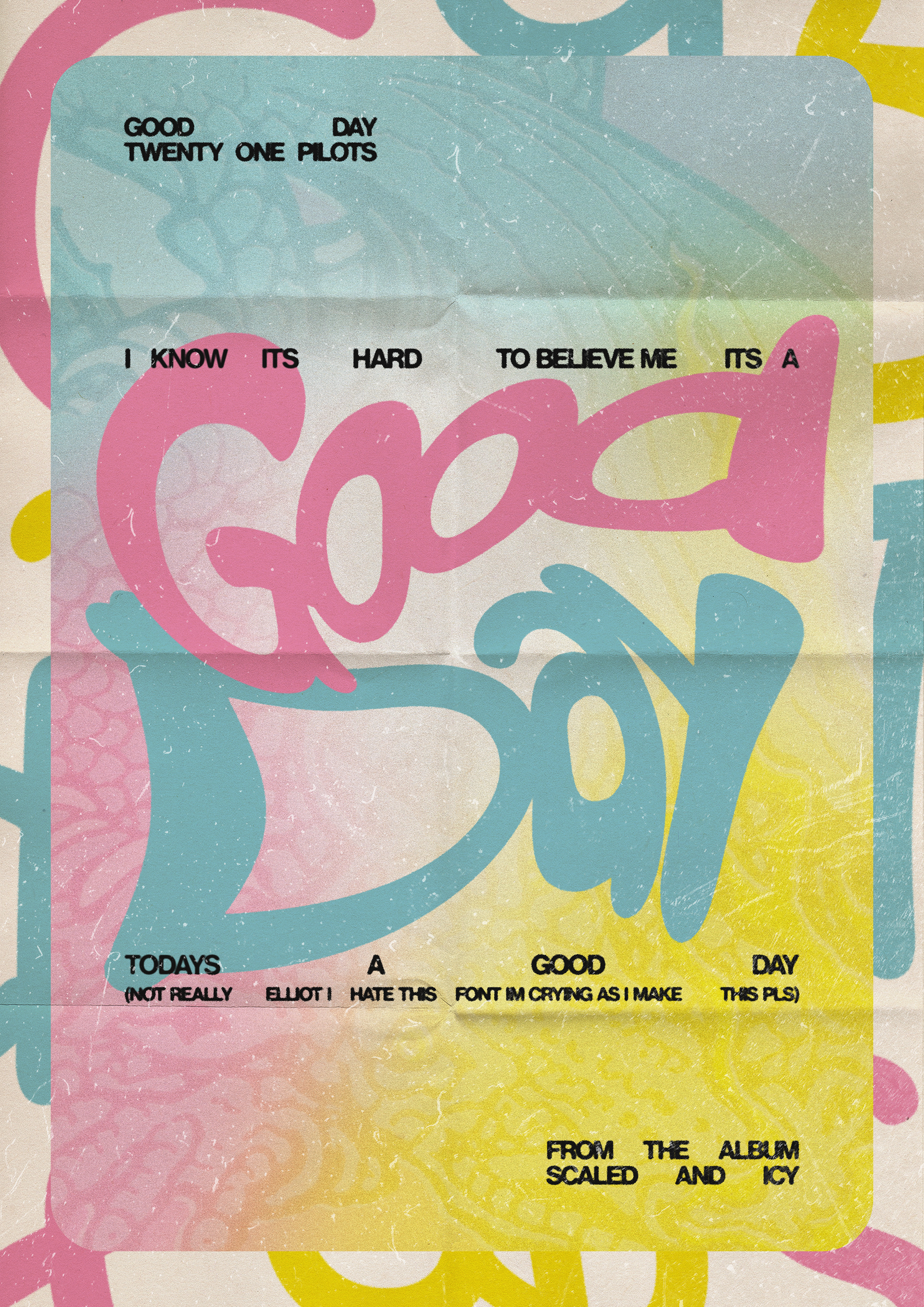 The 7 Days of Bad Fonts is a challenge created by ElliotIsACoolGuy where a list of fonts is given out to the communtiy and designs are created everyday using the fonts in some way.